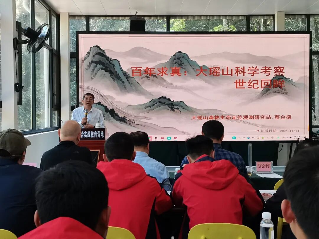 广西森林资源与生态环境监测中心副主任、教授级高级工程师蔡会德以《百年求真:大瑶山科学考察世纪回眸》为题,系统梳理了百年来大瑶山从首次综合科考到成为全国重要生物物种模式标本产地的光辉历程。从老一辈科学家深入秘境、首次发现鳄蜥、金额雀鹛等珍稀物种,到一代代科研工作者扎根深山、持续监测,大瑶山的百年科考史,不仅是其自身生态研究的成长史,更是中国生物多样性研究从起步到兴盛的生动缩影。蔡会德的讲解为参训人员深入理解保护区生态价值、把握保护研究方向筑牢了理论根基。