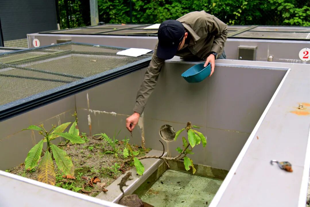 管护员在给怀孕的鳄蜥喂食。廖雨晨摄