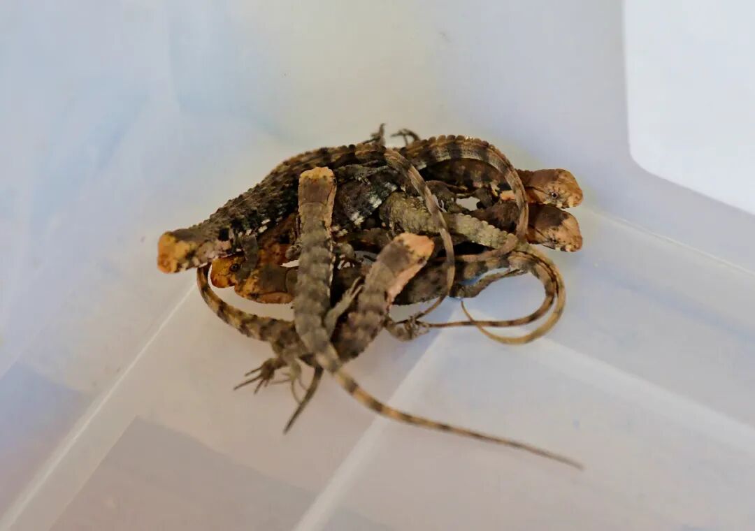 新生的鳄蜥先放置在繁育箱中养殖。廖雨晨摄